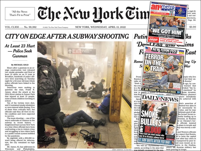 Nothing like a good manhunt to help raise the issue of … why we have so many cops (NY Post). Our force is bloated — we have 613 police employees per 100,000 population, the most of any large city except metro Washington, according to ProPublica — yet still needed the help of the feds, the suspect Frank James himself, and new toast of the town Zack Tahhan to collar the alleged shooter in Tuesday’s subway attack and end the 24-hour manhunt. Tahhan quickly became the story of the day, thanks to his acuity and heroism …
